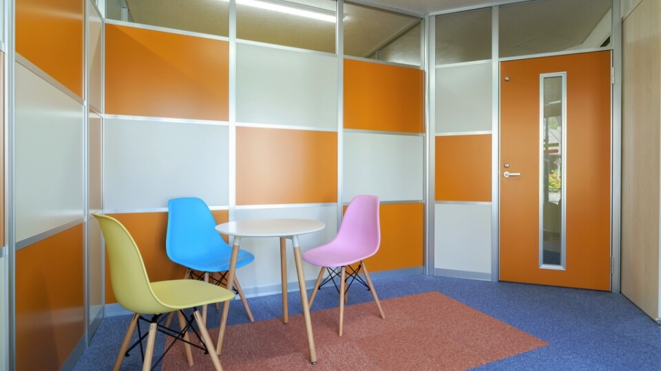 - 遮音性能の高いパーティションの工種がございます。また吸音材を使用して防音効果を高める施工もございます。ご希望をうかがったうえでご提案致します。