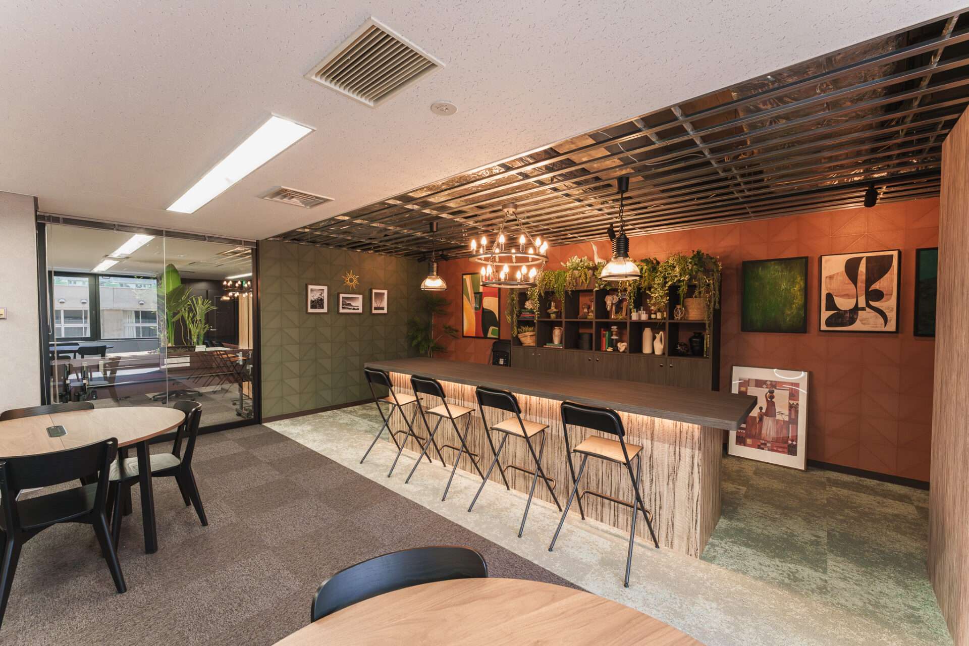 ブラックパーテーションが創る、洗練されたモダンオフィス空間