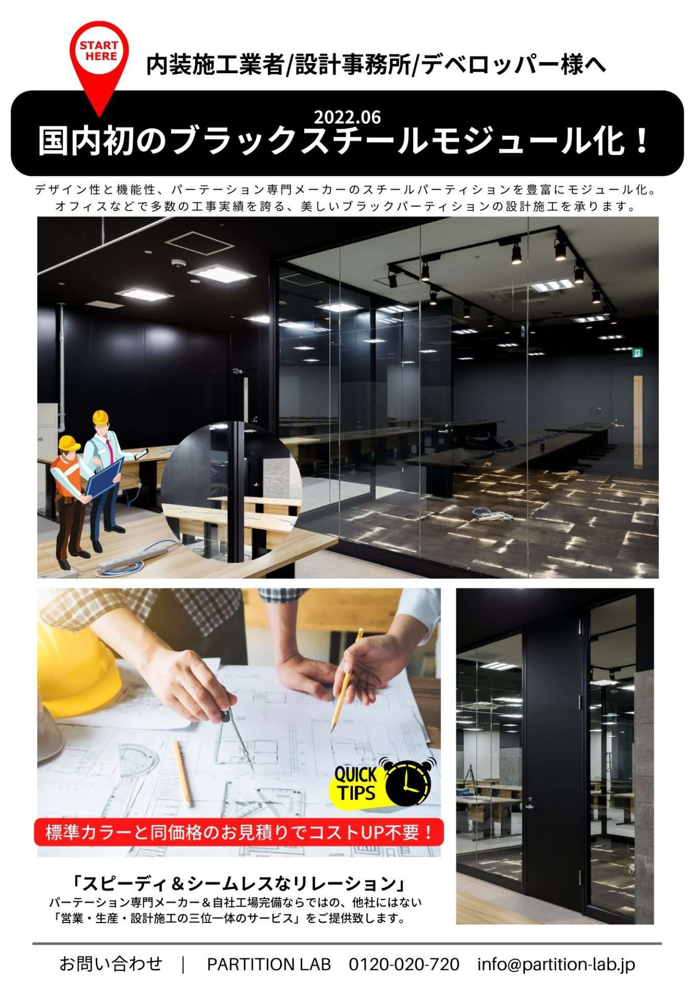 スチールパーテーション「ブラッキー」のモージュール化で、更なる短納期とローコストで、プロユースのご要望にお応えいたします。