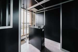 喫煙ブースには、設置する換気システムに最適化され、内部の煙を迅速に排出します。換気システムには「屋外排気型ブース」と「屋内循環排気型ブース」があります。パーテーションラボのショールームでもご案内しております。