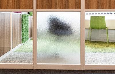 透明ガラスに半透明シートを張り付けた オフィス向けの仕様